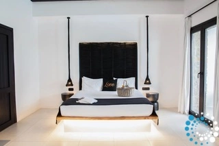Villa Lysea, a Deluxe Suite which offers luxurious and spacious accommodation for up to 4 guests, featuring an outdoor area and a private swimming pool.With bohemian-chic details, the Suite provides an elegant double bed, two sofa beds and a large en-suite bathroom with separate shower and WC.