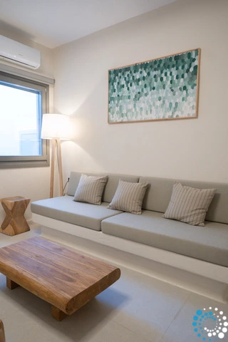 And another 2 bedroom villa with two bedrooms, two bathrooms, living room area with sofa bed, fully equipped kitchen and private parking area.