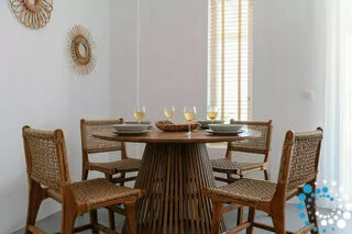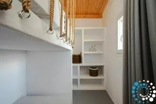 Villa Merizo accommodates up to six guests and offers 70 square meters of living space, all on one level. It features three bedrooms and two bathrooms. The master bedroom includes a double bed, while the second bedroom has two single beds. The third bedroom is equipped with bunk beds, making it ideal for children or friends. A fully equipped kitchen allows you to prepare your meals with ease, and the indoor dining area offers a cozy place to enjoy them.