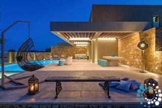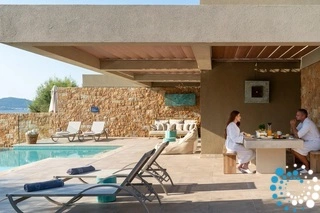 The villa features a 300 sq.m. outdoor area that includes a beautifully landscaped garden, a spacious patio, and a private swimming pool with a built-in Jacuzzi. Guests can relax on the large terrace or unwind in the bathroom, which includes a shower and luxury bath amenities. Inside, the villa offers two double beds with luxury orthopaedic mattresses, ensuring a restful sleep. Comfort is guaranteed year-round with air-conditioning and heating, while in-room entertainment is provided via satellite TV. Additional amenities include a hair dryer, a safe deposit box, luxury bathrobes and slippers, and a Nespresso machine complete with a selection of coffee pods.