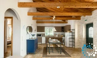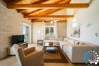 Inside and outside the villa local limestone prevails and this is combined, in the interior, with wood and simple Mediterranean décor, creating a pleasant and relaxing atmosphere.