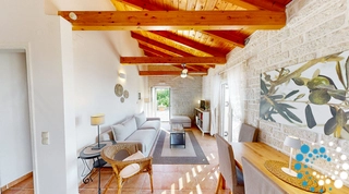 Inside and outside the villa local limestone prevails and this is combined, in the interior, with wood and simple Mediterranean décor, creating a pleasant and relaxing atmosphere.