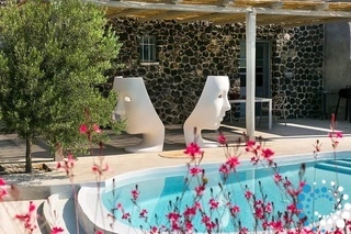 Simplicity is luxury within the estate’s mini-villa of 50m².Enjoy the merge of minimalistic design with the spacious landscapes of olive trees. Bask in the light of the Aegean sun and lay back to the view of the Santorinian vineyards immersing in the deep blue horizon. It consists of a living room, a fully equipped kitchenette, one bedroom (with double bed) and one bathroom (with shower). The villa features an outdoor private pool with sun loungers.