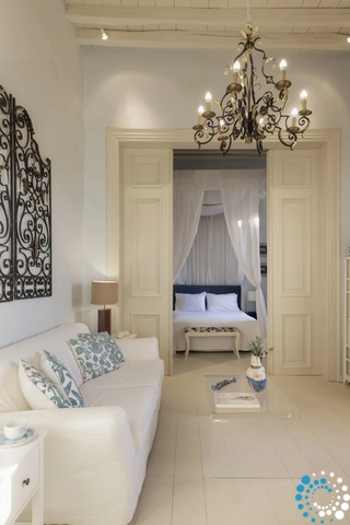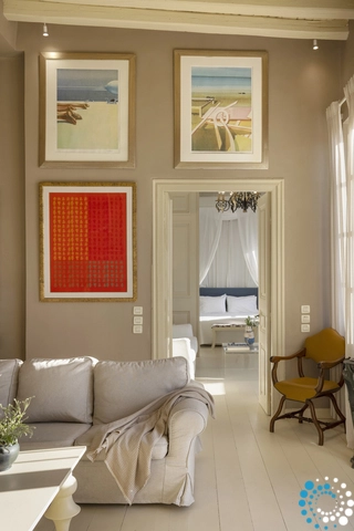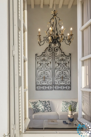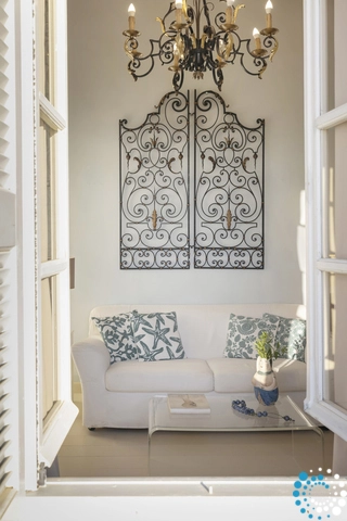 As soon as you step in from the arched iron gate, you will marvel at the excellent restoration of this traditional residence. It has perfectly maintained its noble charm, while it has been delicately modernized with more creative and contemporary touches. The handcrafted wooden doors, the high ceilings and the wooden floors keep the old aristocratic atmosphere alive.