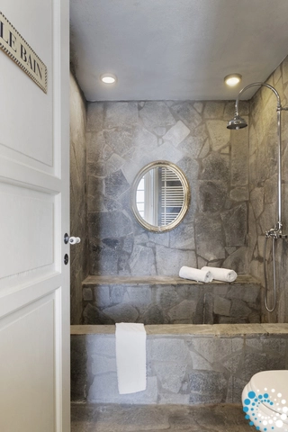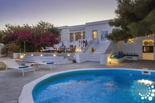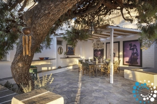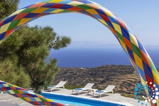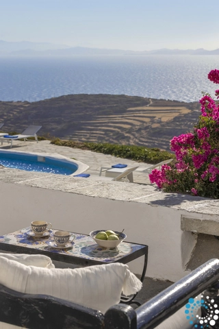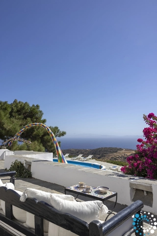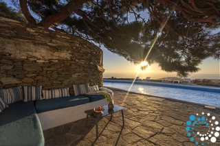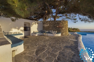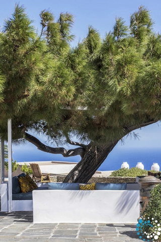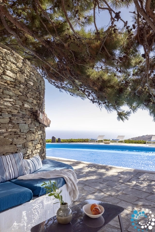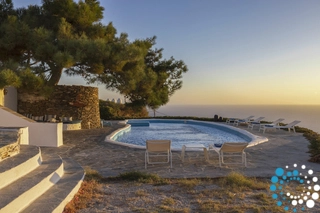 The living experience of this beautiful residence however, is that of a warm home styled by a mix of Greek folklore and European refined decoration and art objects. Wide terraces planted with pines trees surround the building, offering various tranquil sitting and lounging areas, which are ideal for afternoon coffee, small gatherings and an undeniably perfect place for meditation. An amazing large swimming pool adds a contemporary touch of luxury, embellishing the perfect setting for the most relaxing and unforgettable holidays!