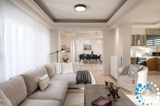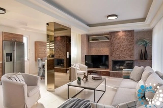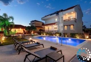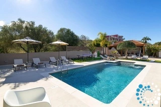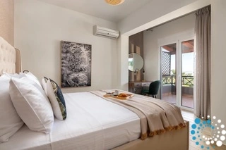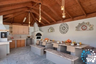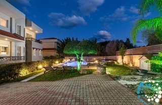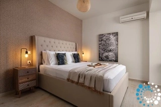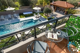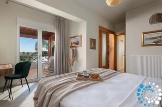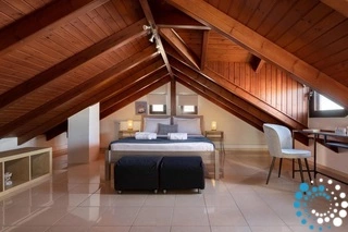 Villa Mouskaria is a spacious and elegant property featuring four beautifully designed bedrooms. Three of the bedrooms are located on the first floor, each with balconies offering stunning views of the pool or the garden. The fourth bedroom is situated in the attic on the second floor and includes a sofa bed and a smart TV. All bedrooms are fully air-conditioned and furnished with comfortable double beds, providing a restful stay for up to eight guests.