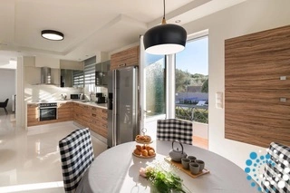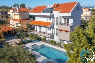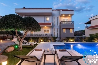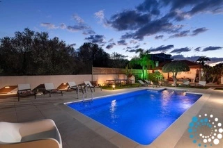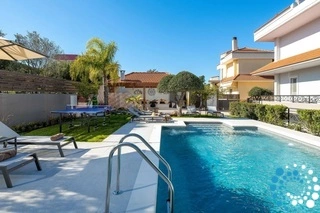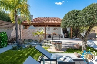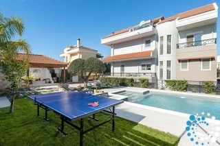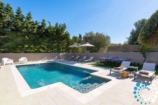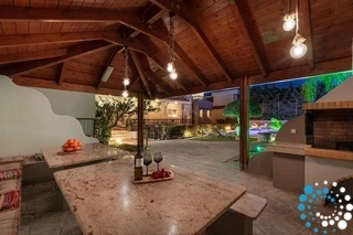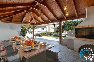The villa offers everything needed for a perfect holiday. Outside, a private swimming pool with a skin-friendly salt electrolysis system invites relaxation, while the landscaped garden, complete with umbrellas, sunbeds, and an outdoor shower, creates an ideal space to enjoy the summer sun. A wooden oven and BBQ facilities make outdoor dining a delight. Inside, the fully equipped open kitchen, dining area, and cozy living room with a fireplace offer a welcoming atmosphere for gatherings. Two bathrooms, one with a shower and one with a bathtub, provide convenience and relaxation. Guests can also enjoy a smart TV with satellite channels, free Wi-Fi, a laundry room with a washing machine and dryer, and table tennis for fun family moments. Parking is available for two cars.