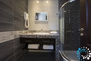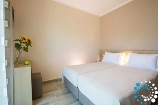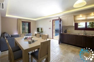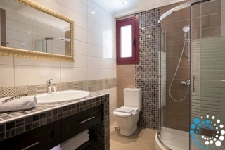 The main residence exudes a warm and refined ambiance, offering three beautifully designed bedrooms that prioritize both comfort and style. The first bedroom features a spacious double bed, an elegant in-room shower, and a private en-suite WC, creating an inviting and luxurious personal retreat. The second bedroom also offers a comfortable master double bed, complemented by a sleek en-suite shower room and WC for added privacy. The third bedroom mirrors this sophisticated design, complete with 2 single beds and a modern en-suite shower room and WC. Each room combines tasteful décor with practical features, ensuring a peaceful and rejuvenating stay.