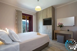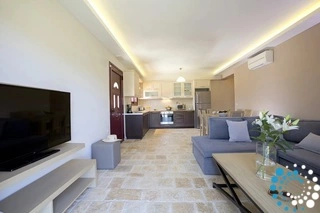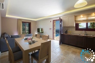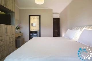 Villa Myrtia has been carefully designed to harmonize elegance with modern comfort, offering a smooth transition between indoor and outdoor living. The open-plan kitchen and living areas seamlessly extend to the pool terrace, revealing stunning views of the Ionian Sea and the surrounding hills. All three bedrooms feature their own en-suite bathrooms, enhancing both comfort and convenience.
