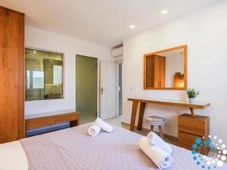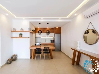 Designed to host up to four guests, the villa features two spacious bedrooms, a cozy sitting room ideal for laid-back afternoons, a comfortable dining area perfect for casual meals or elegant dinners, and two sleek, modern bathrooms. Its minimal décor, subtle luxury accents, and contemporary furnishings embody a sophisticated aesthetic that harmonizes beautifully with the island’s distinctive style.