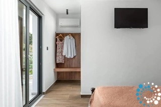 Villa Narcissus offers a stylish and comfortable haven designed for relaxation and convenience. This charming villa features two elegantly furnished bedrooms with double beds, each fully air-conditioned, complete with a TV and a private balcony—perfect for enjoying some quiet time. There are two modern bathrooms with showers, and the inviting living area includes a sofa bed, making the villa suitable for families or small groups of up to five guests.