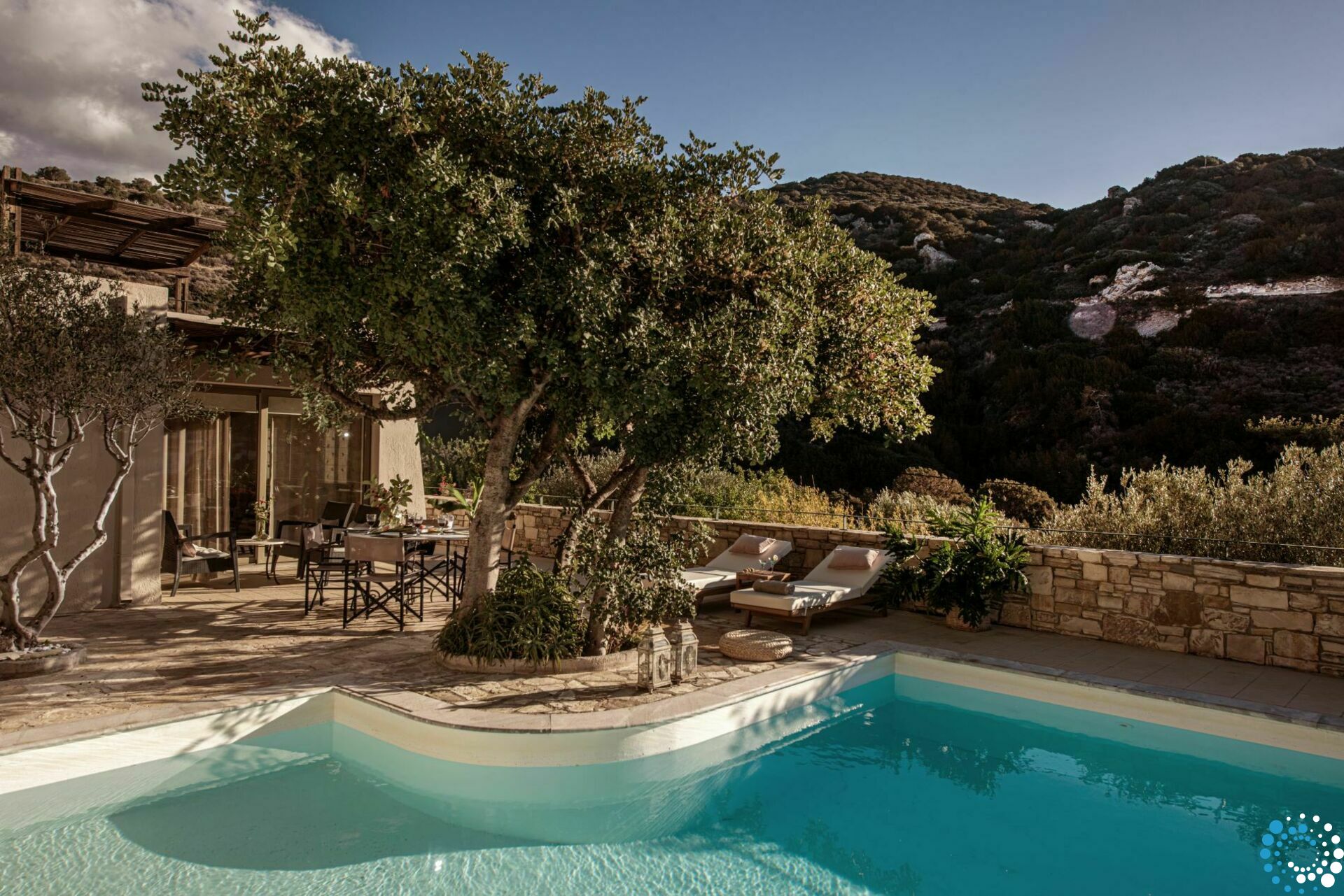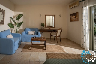 The Pilos beach just 250m away, is honoured with the blue flag award since this program started and organized through the season with all sorts of water sports sun beds and umbrellas, showers, WC's, provided for free, and a beach restaurant. The villa is served by a cozy little restaurant dedicated to the residents of the complex. In addition, guests may also benefit from the various amenities and services of the nearby hotel, including various restaurants, a tennis court, children’s club etc. At 800 m is the village Istron, famous for its beaches, with a lot of tavernas and supermarkets.