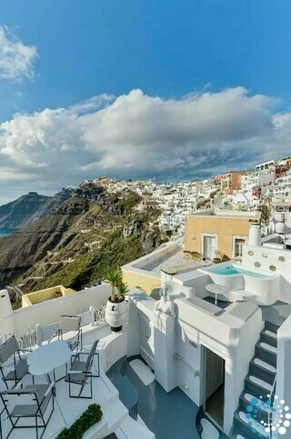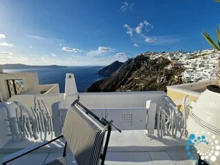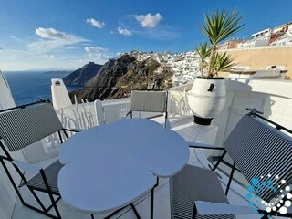 Enjoy the beauty of Santorini from generous outdoor spaces designed for relaxation and scenic enjoyment. Private terraces provide spectacular panoramic views of the Aegean Sea, the volcano, and the dramatic Caldera cliffs, creating the perfect setting for memorable moments.