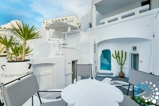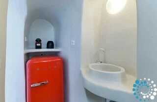 Each of the two elegant bedrooms is thoughtfully designed to offer both comfort and privacy, featuring its own private outdoor entrance and a stylish en-suite bathroom. Ideally located within walking distance of Fira’s vibrant center, guests can easily explore a wide selection of restaurants, bars, museums, and local supermarkets, experiencing the lively charm of Santorini at their own pace.