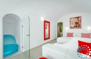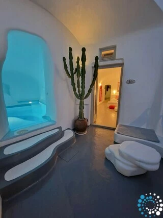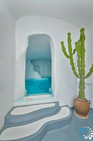 Inspired by Santorini’s iconic whitewashed architecture, the cave-style pool offers a tranquil sanctuary where you can refresh your body and mind. Whether after a day of exploring the island or simply seeking a peaceful retreat, the cave pool provides a truly unique and soothing experience.