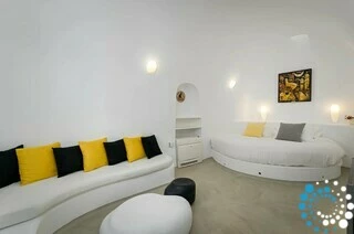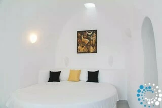 The master bedroom features a serene indoor jacuzzi, offering a peaceful escape after a day of discovering Santorini. Sink into the warm, bubbling water and let the calming atmosphere melt away the day, all in complete comfort and privacy.