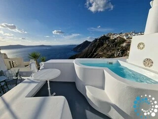 Indulge in pure relaxation in your private heated outdoor jacuzzi. Overlooking the spectacular Caldera, this luxurious feature offers the perfect setting to unwind while taking in one of the most breathtaking views in the world.