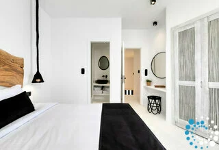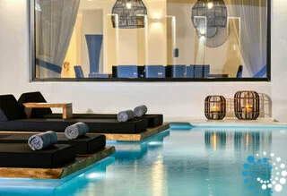 Lounge for hours under the generous Greek sun on the in-pool sunbeds, and after an evening at Nammos or Scorpios, return for a pre-party siesta or a final swim before heading inside to get ready for a night of dancing through Mykonos’ vibrant bar scene.