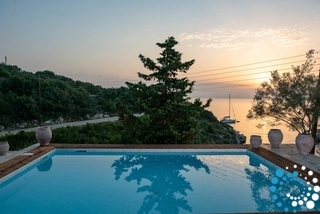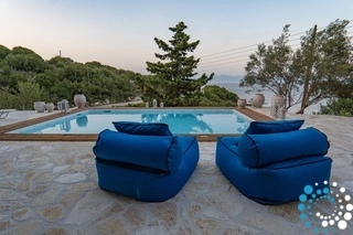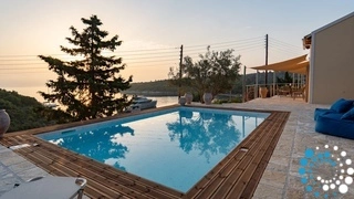 Outside, multiple terraces offer spaces for slow mornings, poolside afternoons, or al fresco evenings under the stars. The private infinity pool with elegant wooden decking invites leisurely swims while taking in the panorama of the Ionian Sea. Additional outdoor areas provide ample space for sunbathing, shaded lounging, and dining with family or friends.