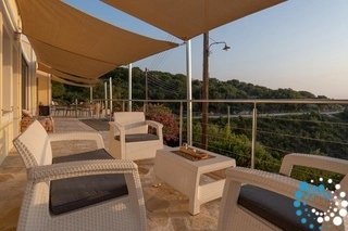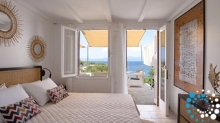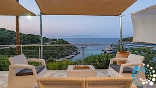 Perched on Paxos’ eastern coast, the villa enjoys a serene and elevated position, surrounded by lush Mediterranean vegetation and overlooking the deep blue Ionian Sea. Despite its tranquil setting, the main village of Gaios is just a ten-minute drive away, offering charming tavernas, boutique shops, and a lively harbor. From here, guests can explore the island’s most enchanting beaches, discover hidden coves accessible only by boat, and wander through centuries-old olive groves, all while enjoying the privacy afforded by the villa’s elevated position.