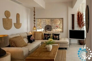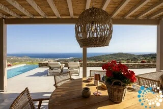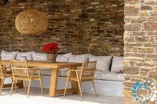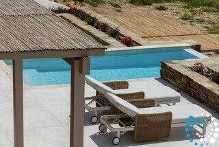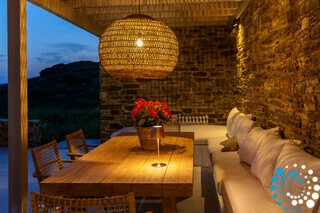 Set on the beautiful island of Tinos, this elegant stone-built villa blends modern design with traditional Cycladic architecture. Its prime location near Tinos Town and charming local villages makes it an excellent base for exploring the island.