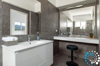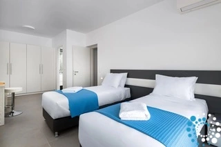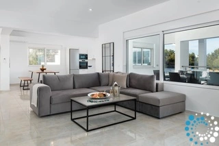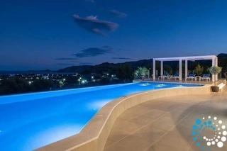Villa Paparouna offers expansive interiors paired with refined luxury, creating a welcoming home-away-from-home atmosphere. The villa features a total of nine bedrooms: four located on the upper level and five on the pool level. The upper floor includes four king-size bedrooms, two of which have private en-suite bathrooms. On the pool level, there are two king-size bedrooms and three twin bedrooms, each with two single beds, all featuring en-suite bathrooms. Altogether, the villa has seven bathrooms, all fitted with showers, five of which are en-suite.