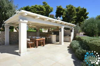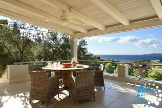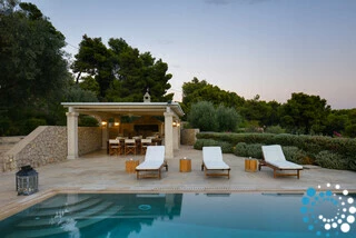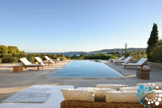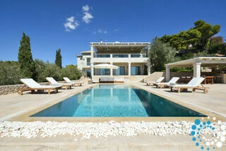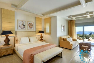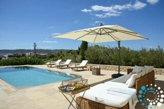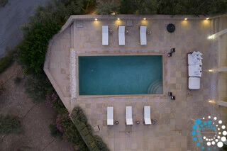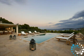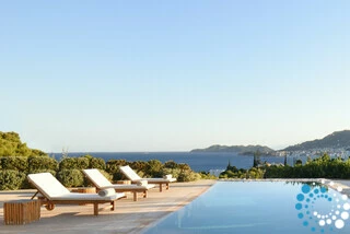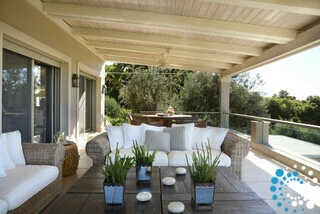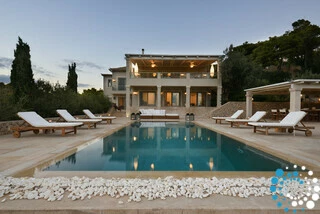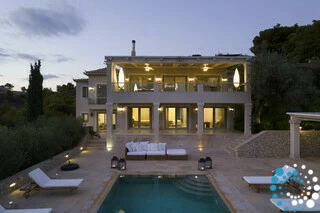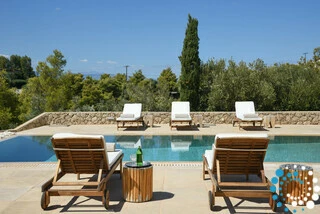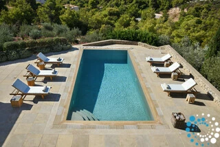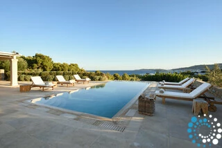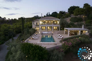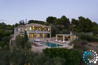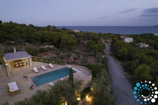 The villa is located near Costa Beach in the Porto Heli area, a prestigious and tranquil corner of the Peloponnese in Greece. Porto Heli is often referred to as the “Greek Riviera” thanks to its crystal-clear waters, upscale villas, and relaxed yet exclusive atmosphere.