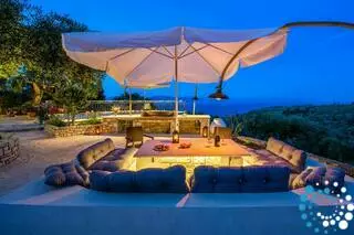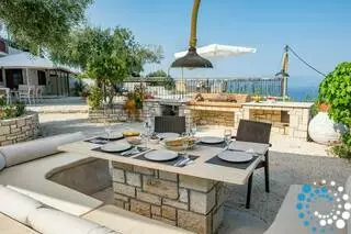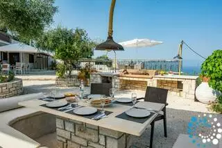 Built in traditional Paxiot style with natural stone walls and terracotta roof tiles, the villa blends harmoniously with its surroundings. The private swimming pool is positioned to enjoy uninterrupted sea views and is protected by a discreet glass safety barrier. Multiple outdoor terraces create inviting spaces for relaxation and dining, while a built-in stone BBQ allows guests to enjoy alfresco meals in an authentic Mediterranean setting. The property also benefits from high-speed Starlink WiFi throughout and professional concierge support provided by PaxosRetreats.