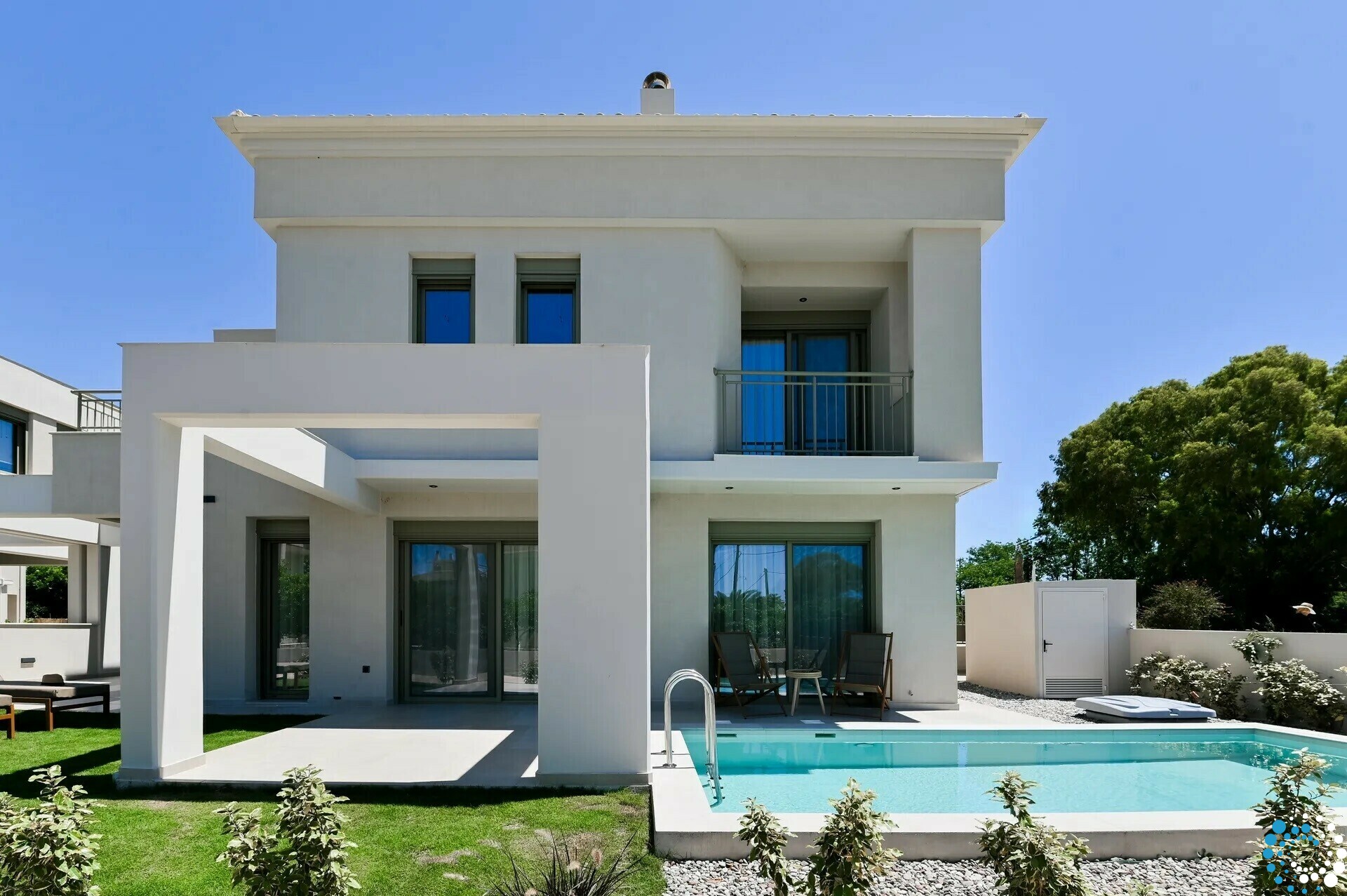 The villa is part of an exclusive collection of four newly built, elegantly designed maisonettes, thoughtfully integrated into the natural surroundings. With earthy tones, clean architectural lines, and premium natural materials, the design exudes a sense of calm sophistication and understated luxury.