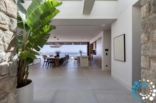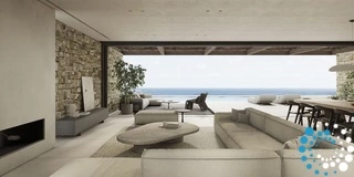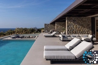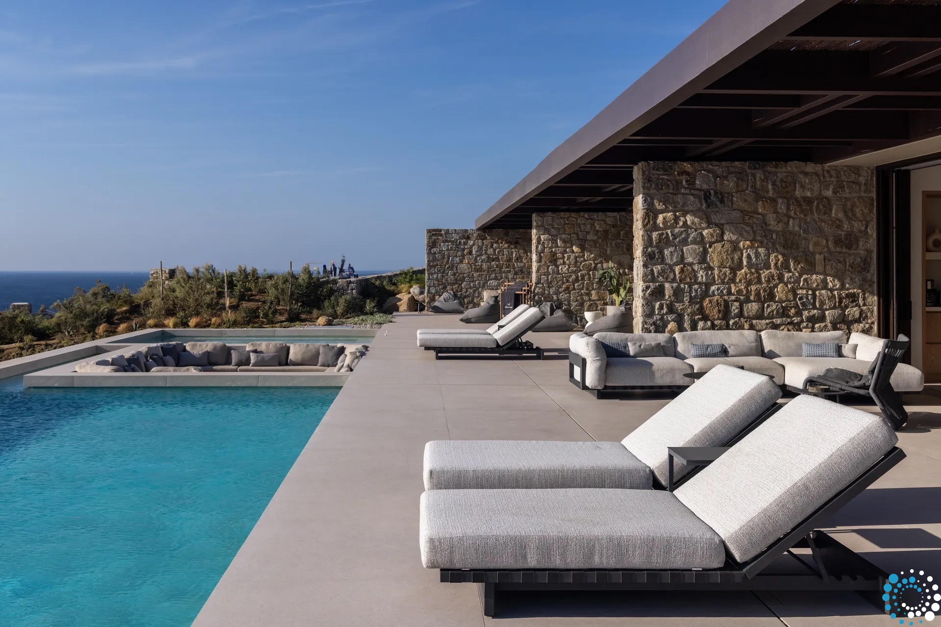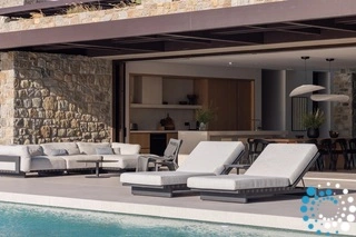 A gourmet's paradise, the villa's state-of-the-art kitchen caters to top chefs and discerning guests alike. Additionally, a separate professional kitchen is discreetly nestled in a private area, providing an exclusive space for dedicated chefs to work their magic, crafting delectable creations that elevate every dining experience. Villa Phaethon Fos Villa's enchanting outdoor oasis features a pool seamlessly integrated with nature, designer furniture, barbecue, and awe-inspiring views for unforgettable relaxation and entertaining.