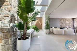 This luxury six-bedroom villa promises a sublime experience with lavish amenities, including a fully-equipped kitchen, a breathtaking living room, an enchanting outdoor area, a swimming pool, gym, TV room, and barbecue. Marvel at the seamless blend of stunning architecture and innovative design, accentuated by earthy tones and bespoke stone and wood details, creating a tranquil haven for guests. Stunning architecture and cutting-edge design harmonize with earthy tones and handcrafted stone and wood accents for a blissful retreat.