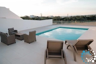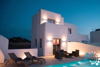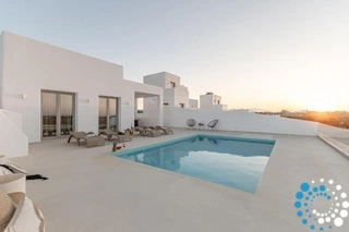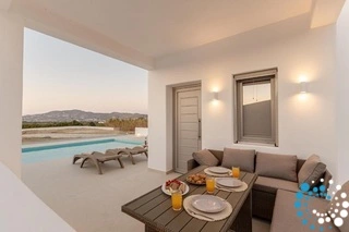 Villa Ploutos is part of an an exclusive complex of three luxury residences that seamlessly blend the understated elegance of Cycladic architecture with the most modern comforts. Perched in a privileged location, with panoramic views stretching across Naxos Town, the sea, and the surrounding villages, the villas offer an atmosphere of serenity and refined sophistication. Each villa features a private swimming pool, a spacious terrace for sun-soaked moments or al fresco dinners under the starry sky, as well as outdoor showers that complete the experience of open-air living with absolute privacy.