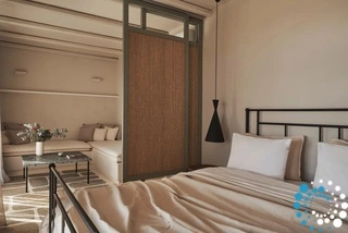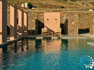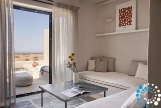 Enjoy uninterrupted views of Tinos, unwind in elegantly raw yet comfortable spaces, and soak in the mini jetted pools as the Aegean unfolds before you. Whether basking in the sun or stargazing at night, every moment in this suite becomes a memorable escape into tranquility and beauty.
