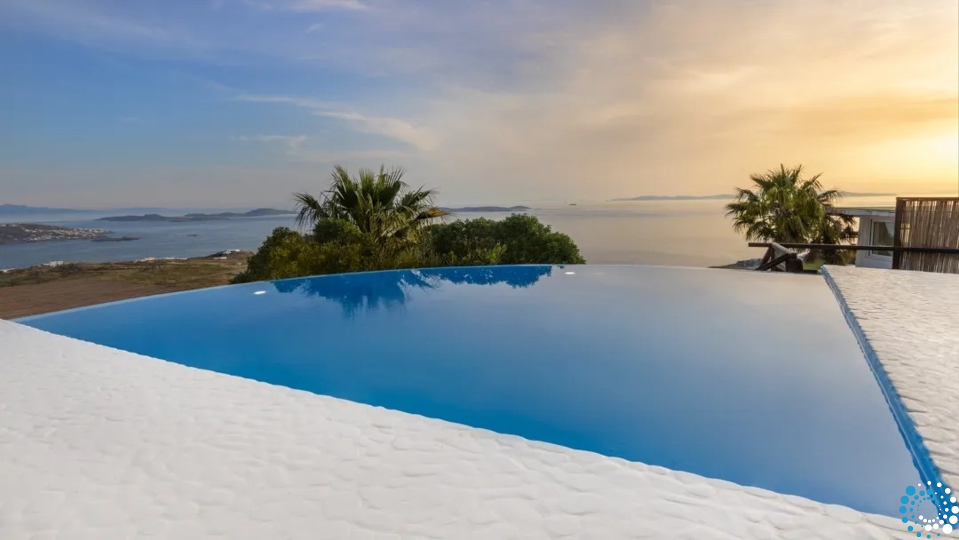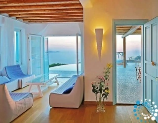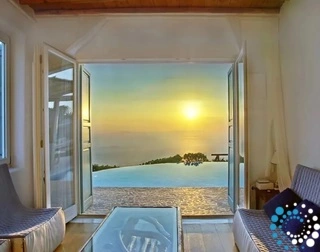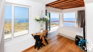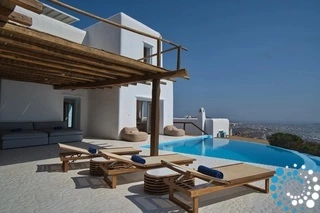 Idyllically situated on the top of the hill, these villas in Mykonos seem to reach for the sky while enjoying commanding panoramic vistas of the endless horizon and the enchanting Mykonos Town of the magnificent Cyclades archipelago.