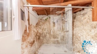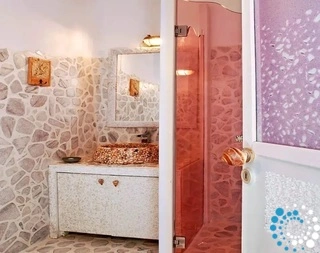 On the first floor, guests are welcome to plunge in their private round shaped pool or lounge on the sunbeds and hammocks by the pool, prepare their daily meals in the fully equipped kitchen, relax in the living room watching TV or enjoy a delectable meal at the cozy dining area that can seat up to 8 guests. On the upper floor you may find the 2 Master double ensuite bedrooms sharing a private veranda with sunbeds, sun loungers and a hammock where guests can relax as the enjoy the majestic views to the sea, the sunset and the flickering lights of Mykonos Chora. On the lower level, you can find 2 double ensuite bedrooms facing the garden and the magnolias.