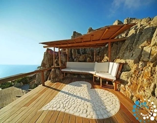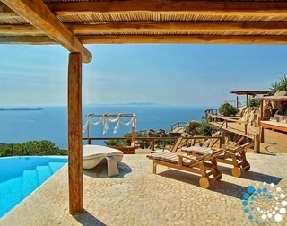 All luxury villa rentals with pools have been crafted and decorated to the highest standards of style and comfort, featuring unique natural handmade furniture and impressive, irreplaceable adornments meticulously collected from around the world by the owner himself, renowned Greek fashion designer Panos Zinas.