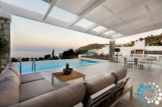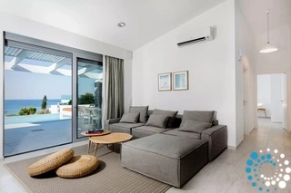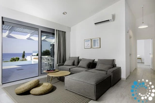 Perched in an elevated position, Villa Pylona boasts breathtaking panoramic sea views, unforgettable sunsets, and a peaceful natural setting. The calm surroundings and stunning landscape make it an ideal retreat for those seeking privacy and serenity by the sea. The beach is only a 2-minute walk away, allowing guests to enjoy crystal-clear waters at any time of the day.