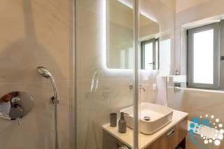 The complex consists of two independent stone residences, each with its own distinctive architectural identity and positioned just steps from the sea. Thoughtfully designed, they provide uninterrupted views of the shimmering horizon and front-row seats to unforgettable sunsets, where the sky melts into the Aegean.