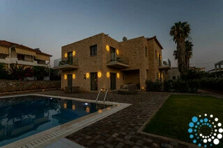 Each villa blends contemporary sophistication with authentic character, featuring refined details that immediately evoke a sense of warmth and understated luxury. Upon arrival, guests are welcomed by soothing earthy tones and natural textures, creating an atmosphere that feels both indulgent and deeply relaxing. Villa Pyrgos offers a rare balance of effortless elegance and modern comfort.