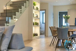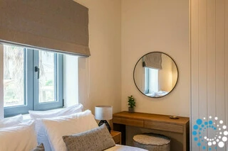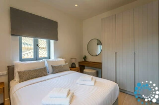 Upstairs, the first floor offers three beautifully appointed bedrooms, each with a comfortable double bed and its own private bathroom with a shower. One of the bedrooms also includes a 40″ TV and access to a private balcony.