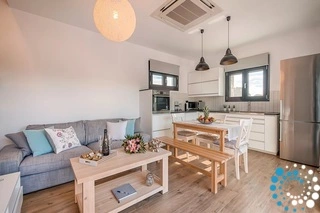 The beauty of the surrounding countryside and the proximity of Prasonisi beach make thia villa a great environment for both groups of friends or families to enjoy a relaxing time together. Prasonisi beach is a narrow spit of sand connects the mainland to a rocky islet, splitting two distinct waters: a sheltered, shallow lagoon perfect for learning and the open Aegean for more adventurous waves.