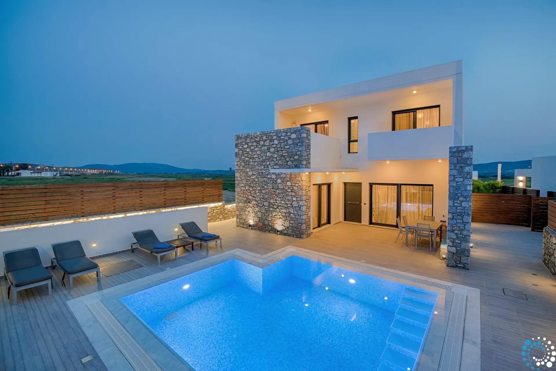 Villa Rodia is part of a complex of three detached luxury private villas, which are located in the most beautiful part of Rhodes, the unspoiled countryside of Prasonisi! Located only 5 minutes from the beach and just a few steps from the lovely traditional village of Kattavia, they offer a private swimming pool, secure parking, barbecue and luxurious rooms. These are eco-friendly villas, decorated with natural stone.