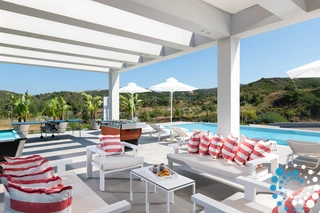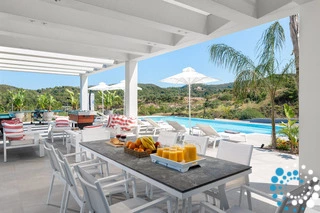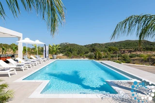 The true magic, however, lies beyond the villa’s doors. Villa Rodinia reveals its pièce de résistance: a sprawling pool offering breathtaking panoramic views. Lounge in the sun-drenched outdoor area, dine surrounded by fragrant garden blooms, or simply immerse yourself in the peace and tranquility of it all.