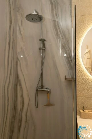 Outside, the front garden features a storage area and private parking. The terrace offers spectacular views, an infinity pool, sun loungers, an outdoor shower and a toilet. Under the covered pergola, you’ll find a large dining table for 12 people, a comfortable lounge area and an outdoor kitchen with barbecue, perfect for long summer evenings.