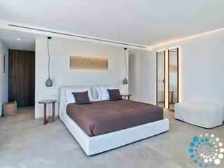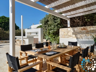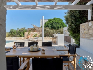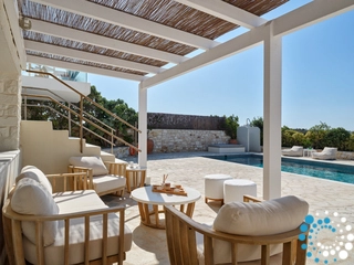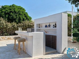 The villa combines timeless Cycladic architecture with modern luxury, featuring a private pool, expansive outdoor living and dining areas, high‑end finishes, and eco‑friendly elements meant to deliver a sophisticated, yet sustainable, experience. A poolside bar and barbecue area make it perfect for gathering with loved ones in an idyllic setting.