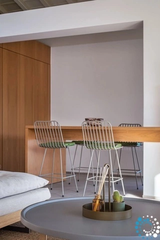 When the sun is shining, the expansive terrace becomes the heart of the home. It features a variety of cozy lounge areas, a large shared swimming pool, and a communal outdoor barbecue—perfect for enjoying leisurely moments together under the warm Greek sun. Whether you’re lounging by the pool or relaxing on the terrace, there are plenty of inviting outdoor spaces to unwind.