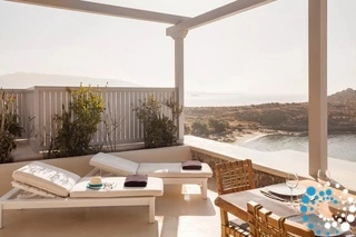 The Seaside Villas feature three brilliantly appointed bedrooms with private bathrooms fitted with an invigorating shower or bathtub and come complete with lavish amenities and toiletries. The fully equipped kitchen invites guests to create culinary delights and relish mouthwatering flavors with their loved ones at the cozy dining area by the living room. Esteemed guests can relax at the lovely sitting area of their own private balcony or terrace while enjoying unobstructed views to the endless horizon and the captivating sunrise of Mykonos.