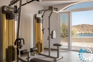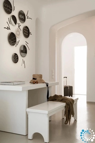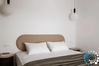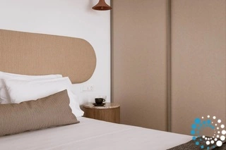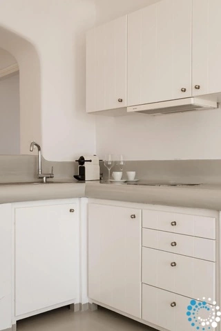 The vast living room and dining area is fitted with fine furnishings and contemporary decor and exudes an air of serene tranquility and unparalleled warmth. The private balcony offers a spacious sitting area inviting guests to relax under the everlasting sun or unwind in the outdoor Jacuzzi as they gaze at the infinite azure of the sea and the miraculous crimson hues of the sunrise.