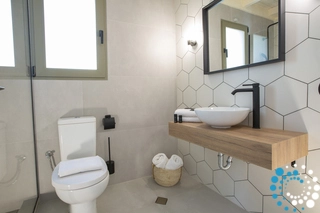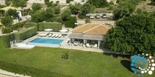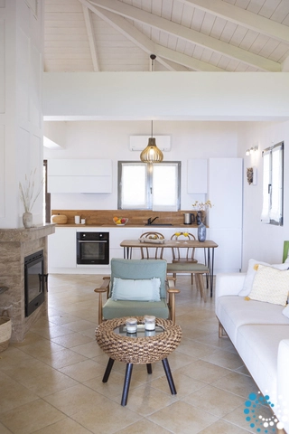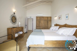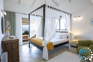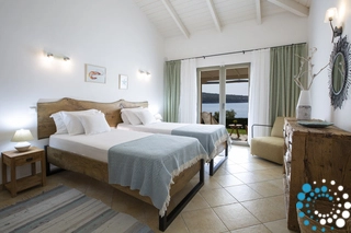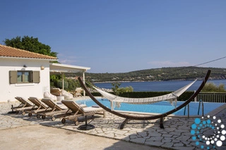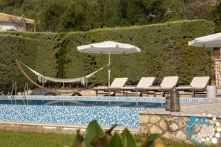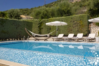 The outdoor area provides you with various spaces to relax and admire the views, including a private infinity pool with sunbeds and umbrellas, an outdoor dining table and lounge set, also a reading nook and a hammock. The house is surrounded by traditional stone fences nesting the garden that accommodates 200 year old olive trees and colorful Bougainvillea bushes. This property is the perfect Ionian summer gateway for you and your family or friends.