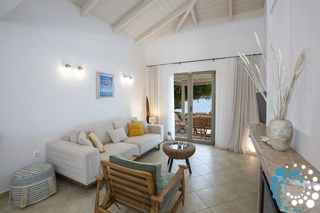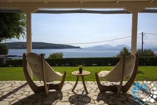 Villa Smaragdi in Vasiliki offers direct beachfront access with stunning sea views. Guests can relax on the sun terrace or take a dip in the outdoor swimming pool.